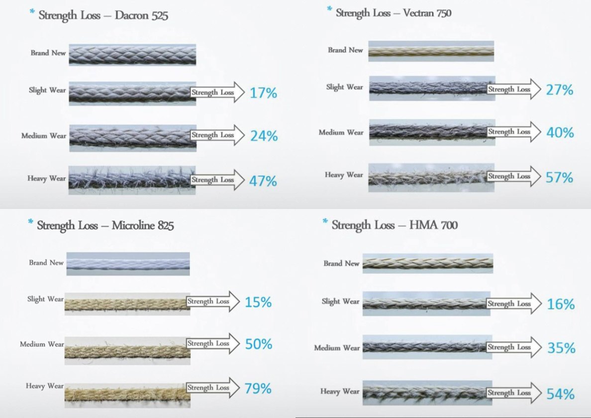 Потеря прочности различных строп в процентном соотношении из испытаний компании Performance Designs